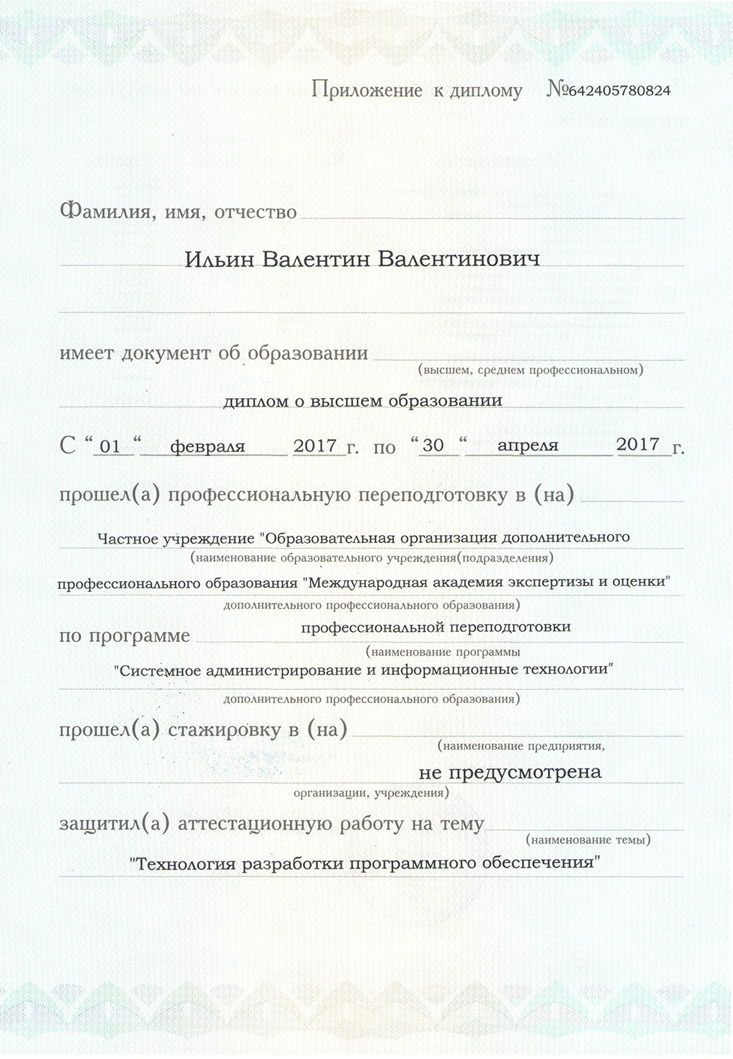 К примеру, у вас есть высшее образование «Бухучёт, анализ, аудит», и вы хотите стать оценщиком. Поступаете на переподготовку по программе «Оценка стоимости предприятия (бизнеса)», через 6 месяцев получаете диплом.