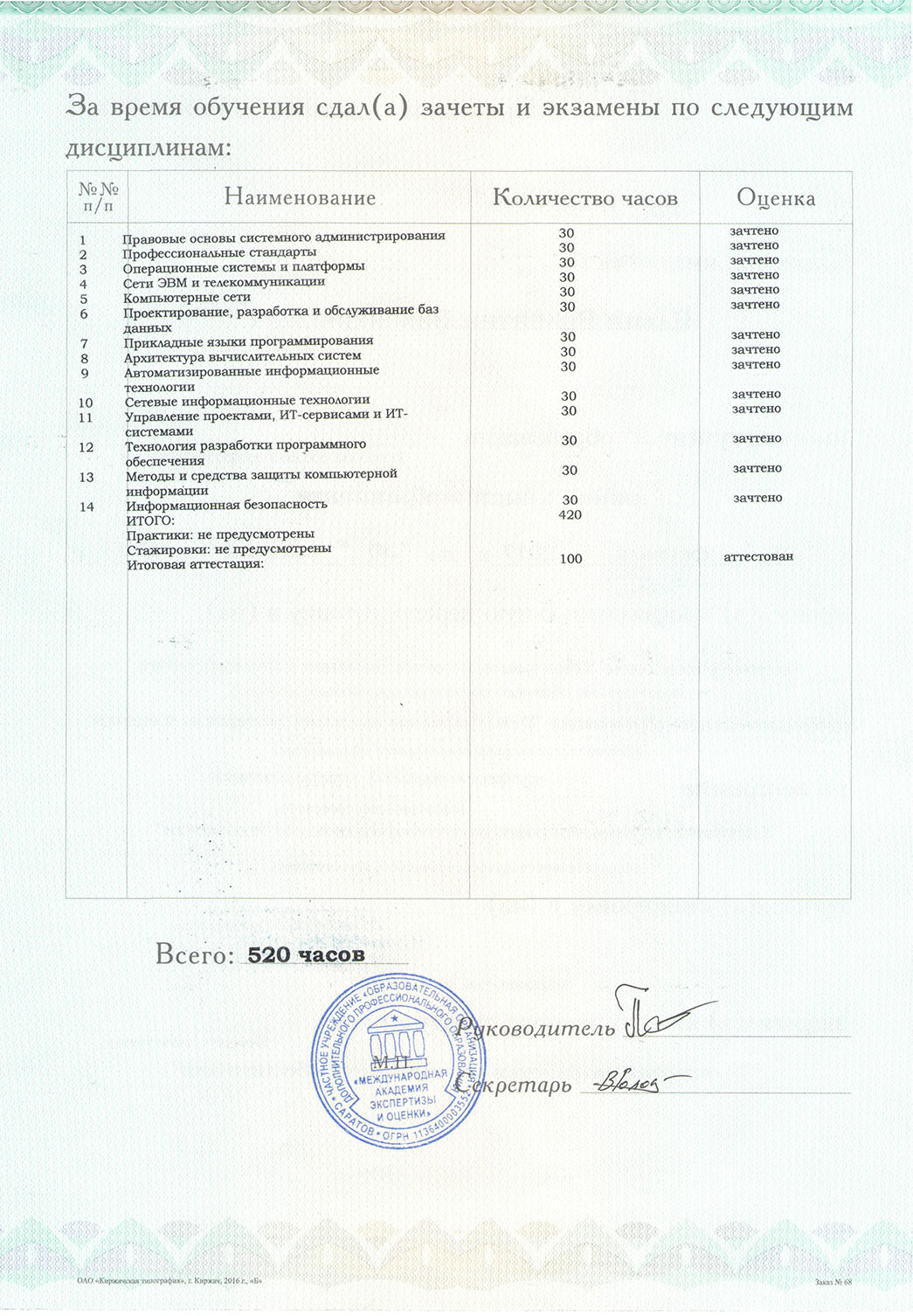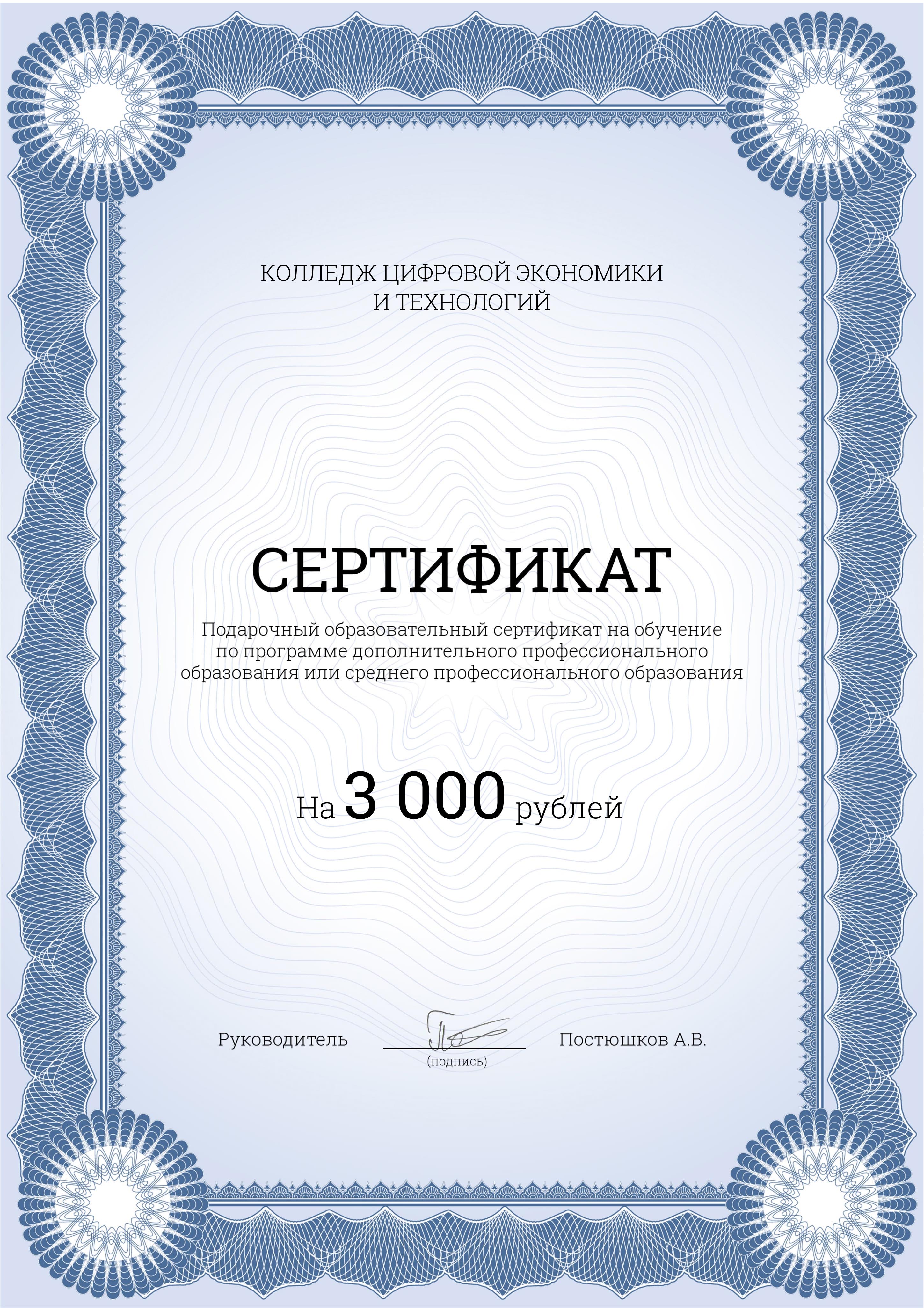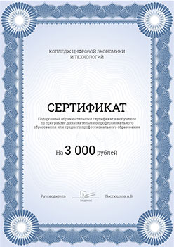 Не является публичной офертой. Окончательное решение о выдаче сертификата остается за органом по сертификации на основании опыта работы и образования. Стоимость сертификата не входит в стоимость обучения. Подробная информация у куратора.Вы получаете сертификат номиналом 3000 рублей, который можете подарить любому человеку. Им можно оплатить часть обучения по любой программе колледжа.