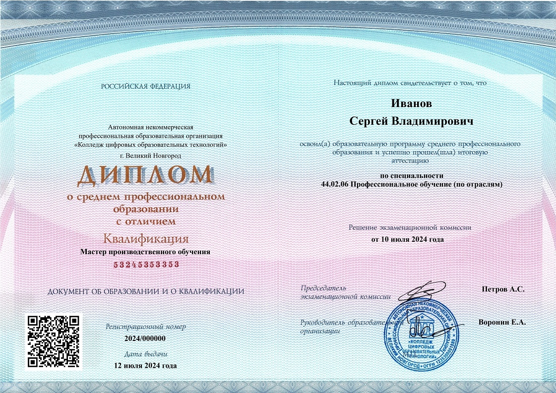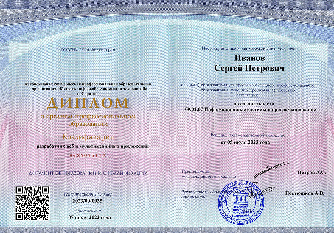 В соответствии с действующим образовательным законодательством, дипломы СПО колледжа заносятся в ФИС ФРДО в течение 3 дней с момента выдачи, а дипломы о профессиональной переподготовке в течение 2 месяцев с момента выдачи.