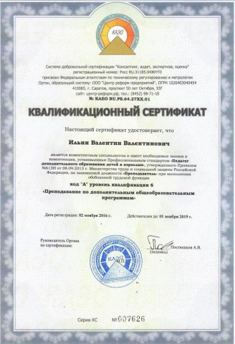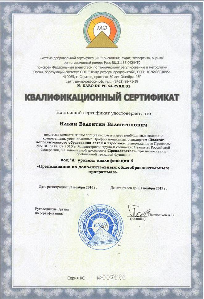 Квалификация: Педагог дополнительного образования.