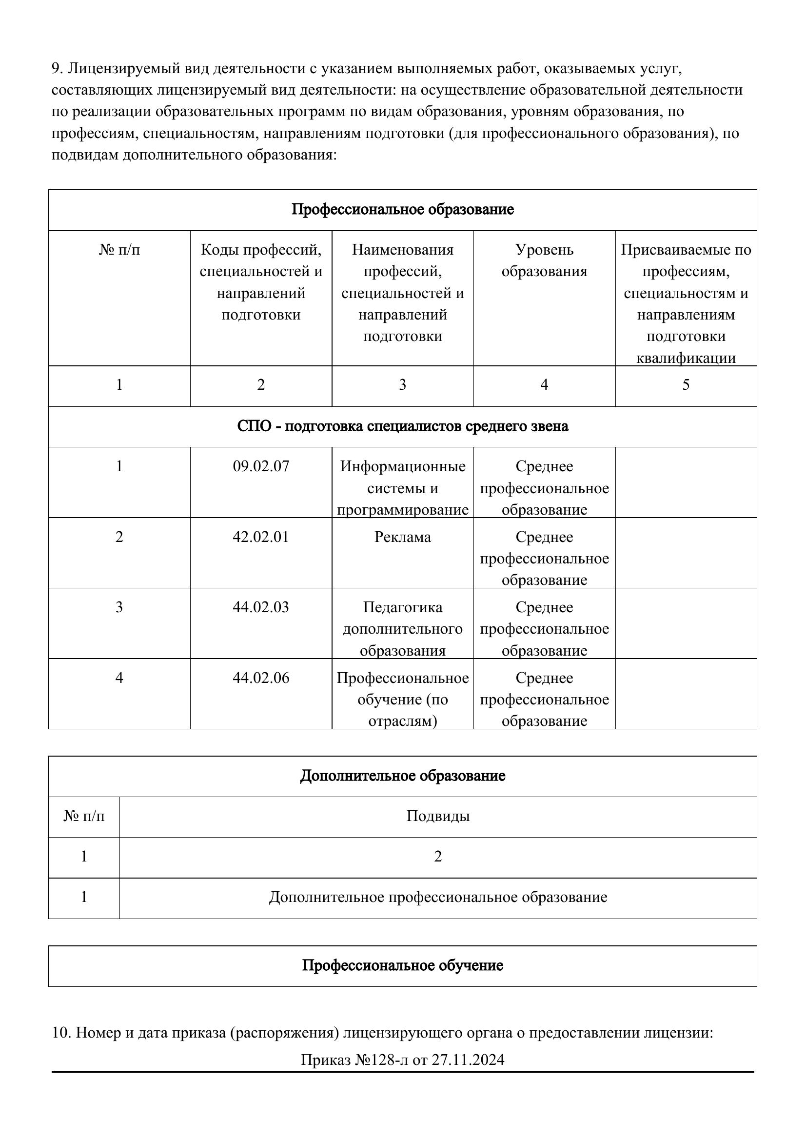 Уровень образования: Среднее профессиональное образование.